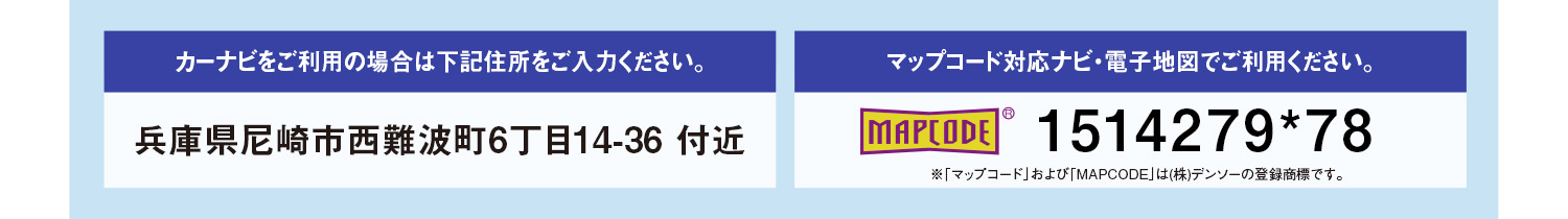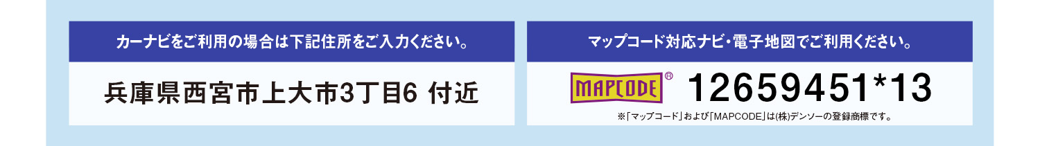 ※「マップコード」および「MAPCODE」は(株)デンソーの登録商標です。