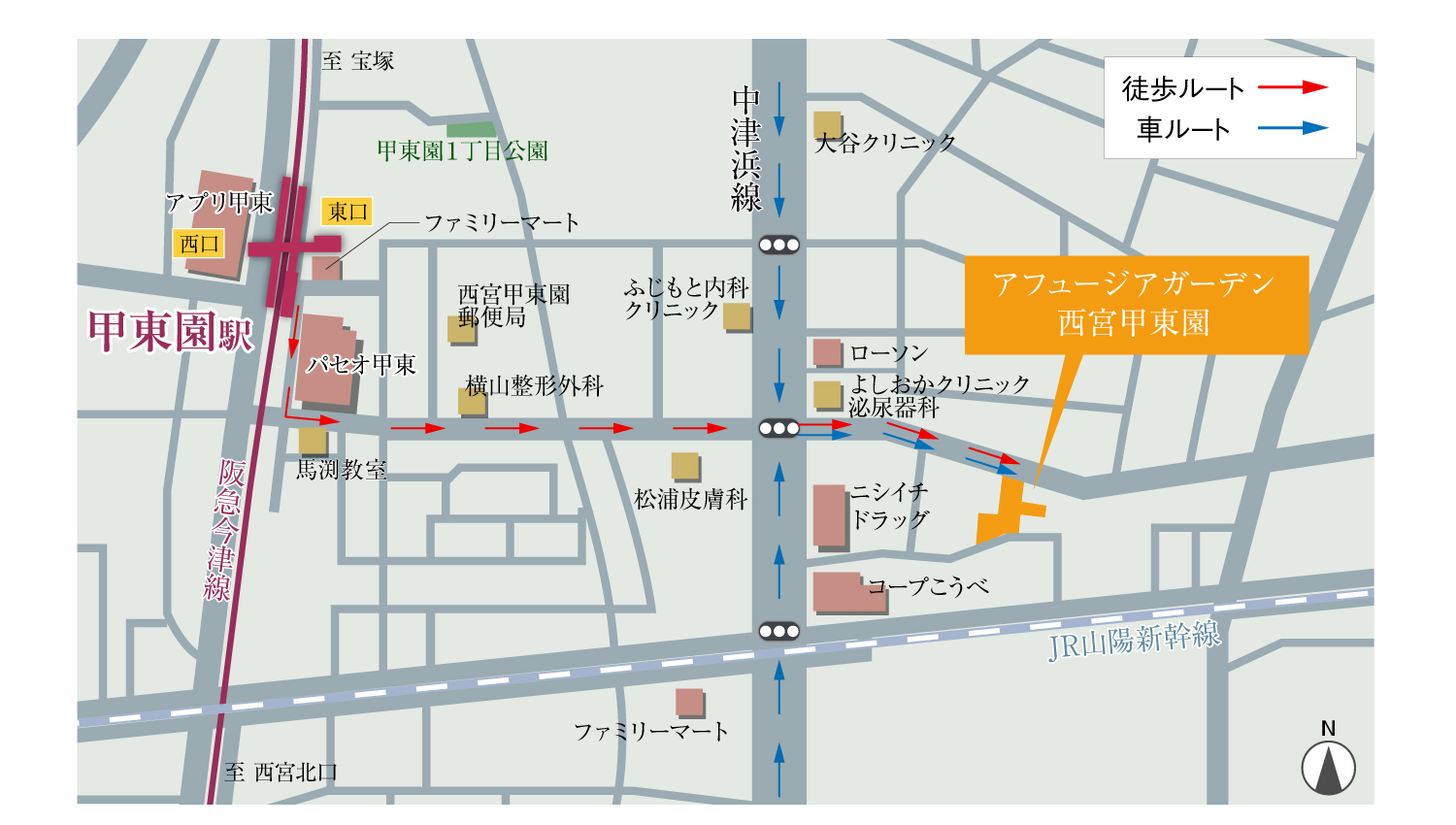 「アフュージアガーデン西宮甲東園」現地案内図