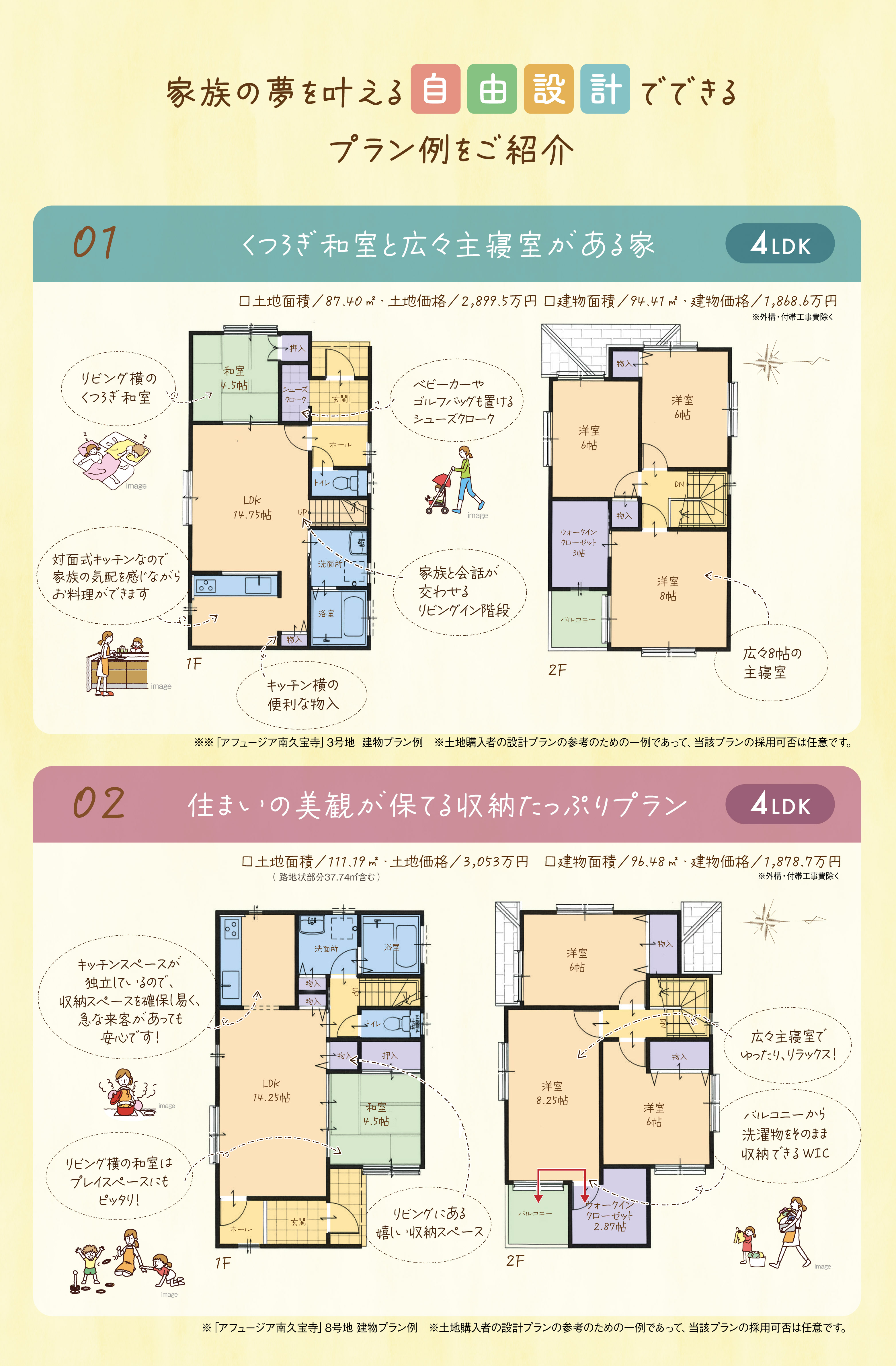 アフュージア南久宝寺〔自由設計でできるプラン例をご紹介〕