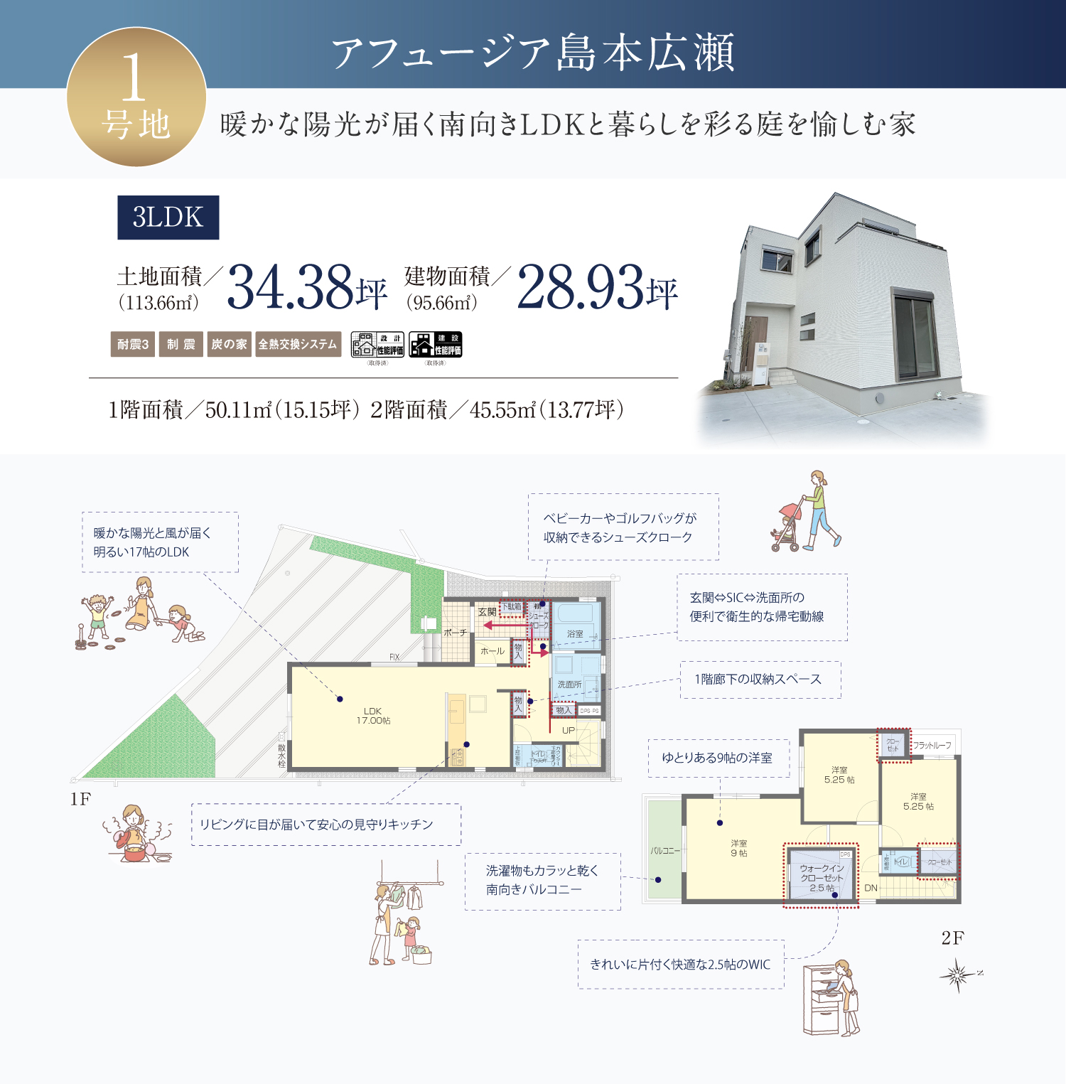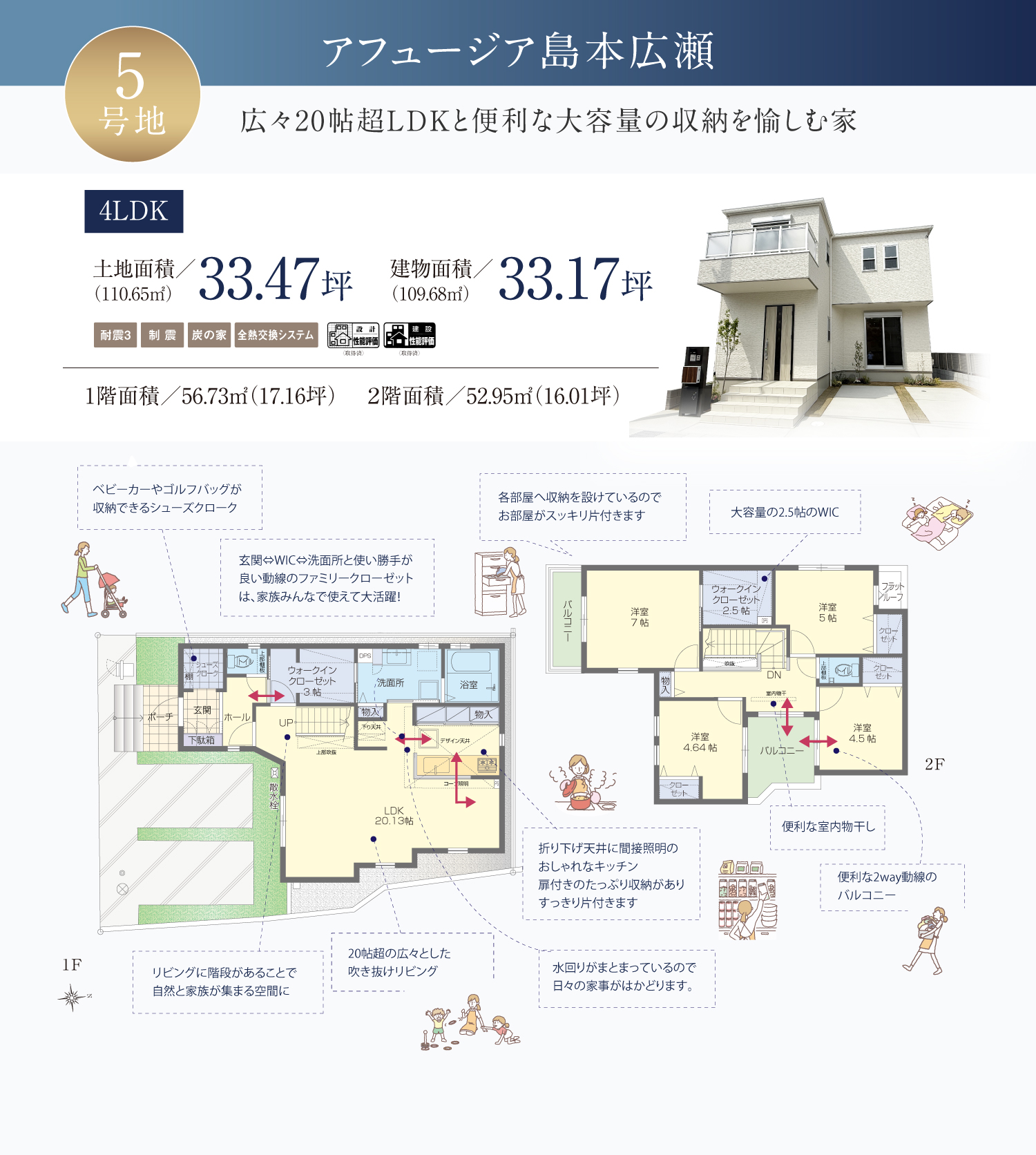 ※ 掲載の外観写真・内装写真・間取り図は「アフュージア島本広瀬」1号地、5号地モデルハウスのものです。(2025年4月・5月・6月撮影)一部CG加工及び一部オプション含む。※掲載の外観写真・間取り図の外構・植栽はモデルハウス仕様で標準とは異なります。