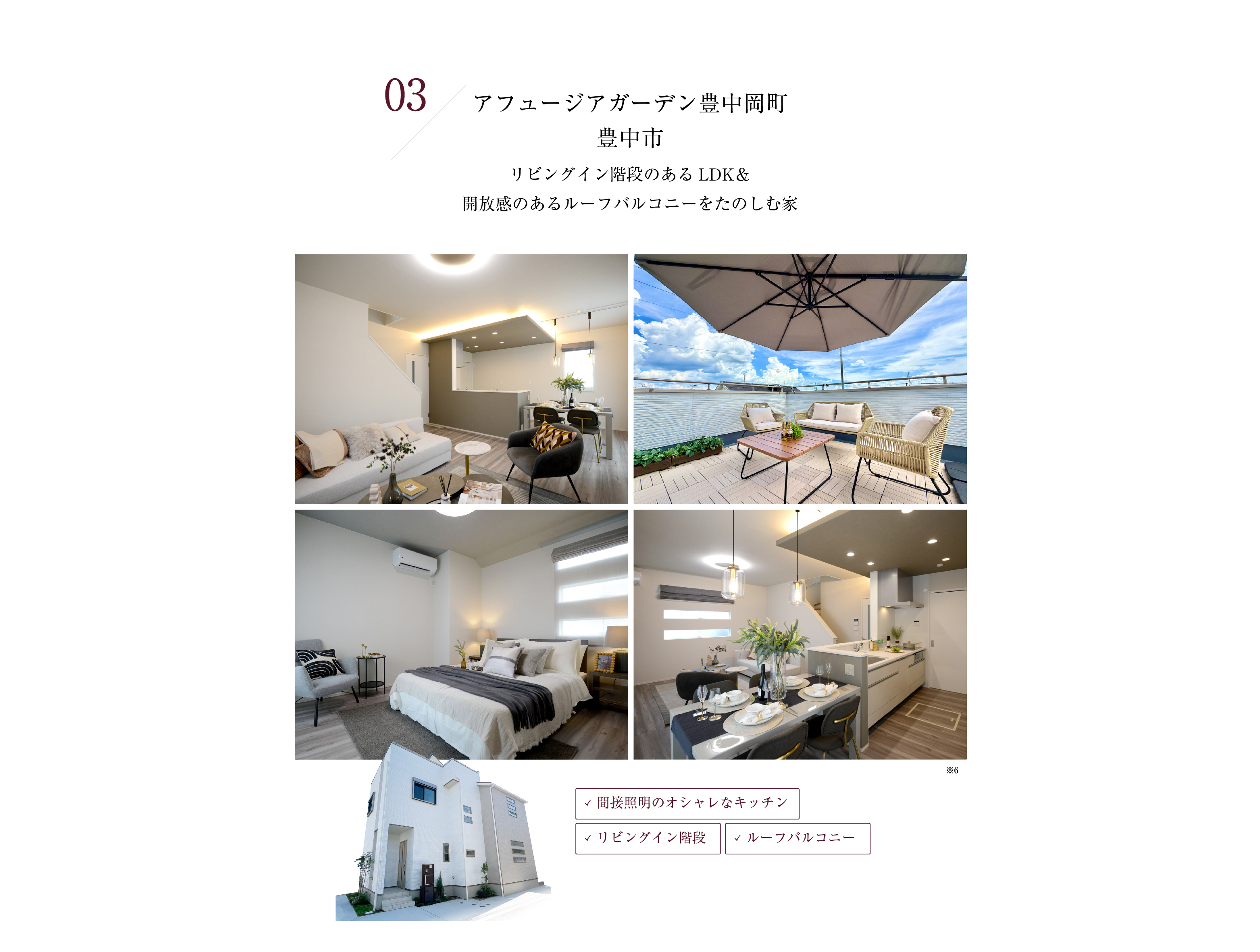 ※6 掲載の外観・内装写真は「アフュージアガーデン豊中岡町」1号地のものです。(2025年8月・9月撮影)