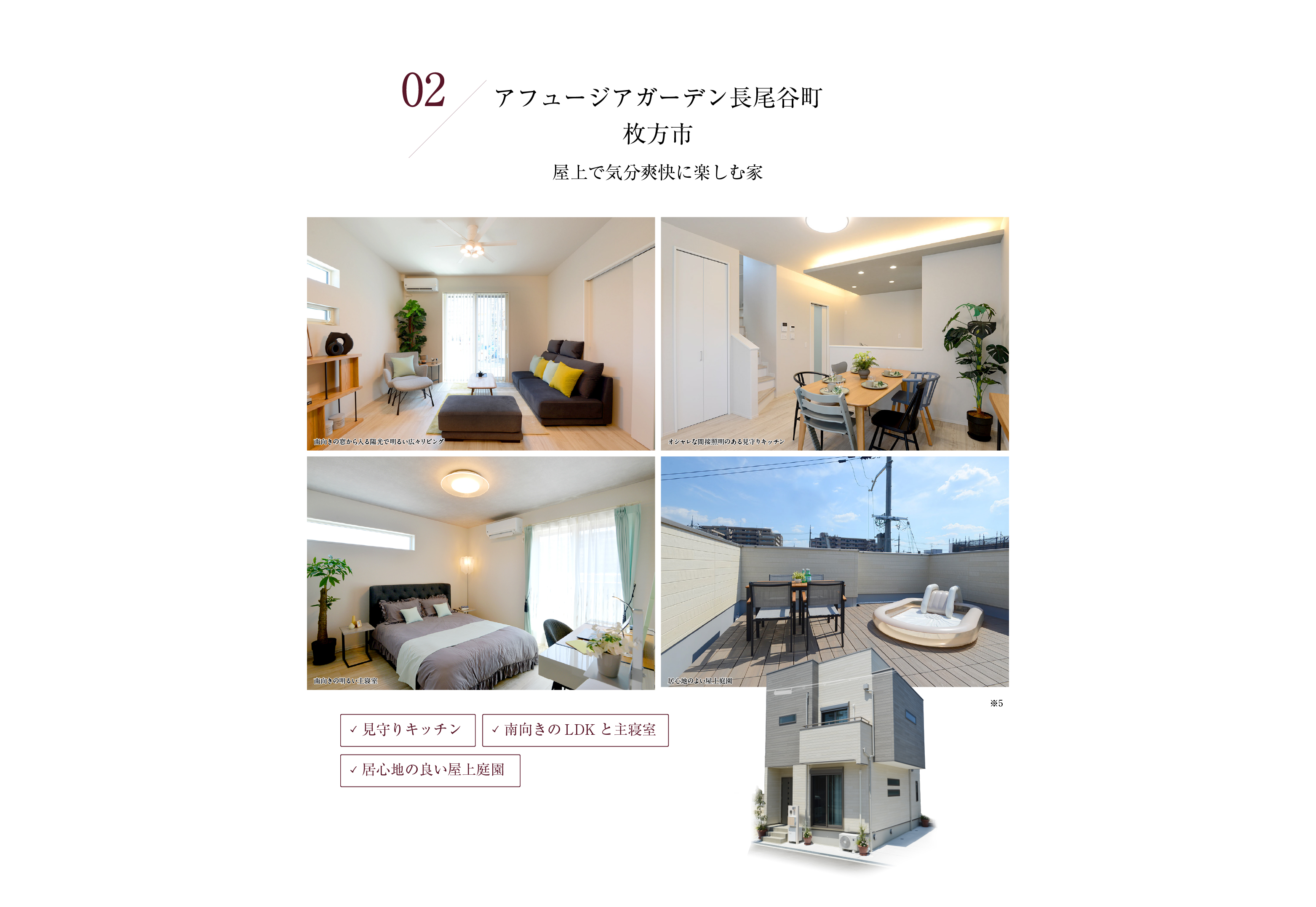 ※5 掲載の外観・内装写真は「アフュージアガーデン長尾谷町」1号地のものです。(2025年7月撮影)