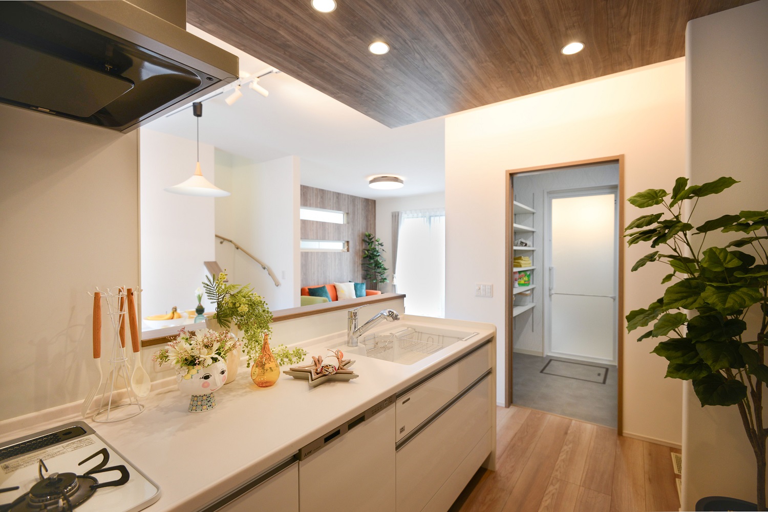 ◆キッチンと水回りが一直線!家事がはかどる動線計画