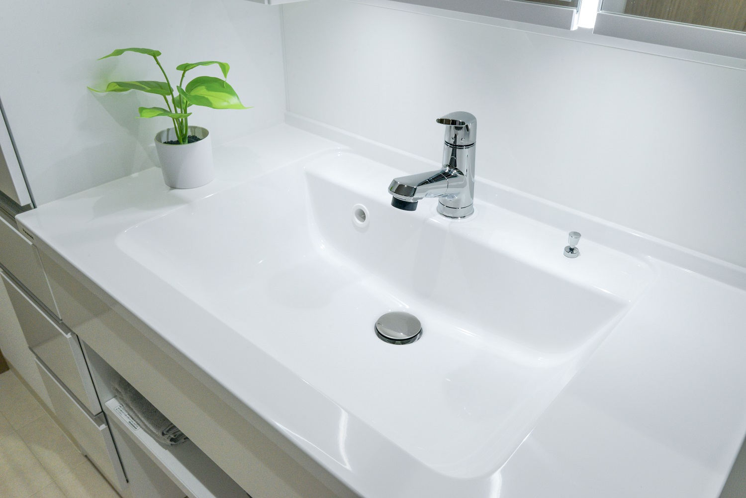 ◆さっとお掃除できる継ぎ目のない洗面台カウンター