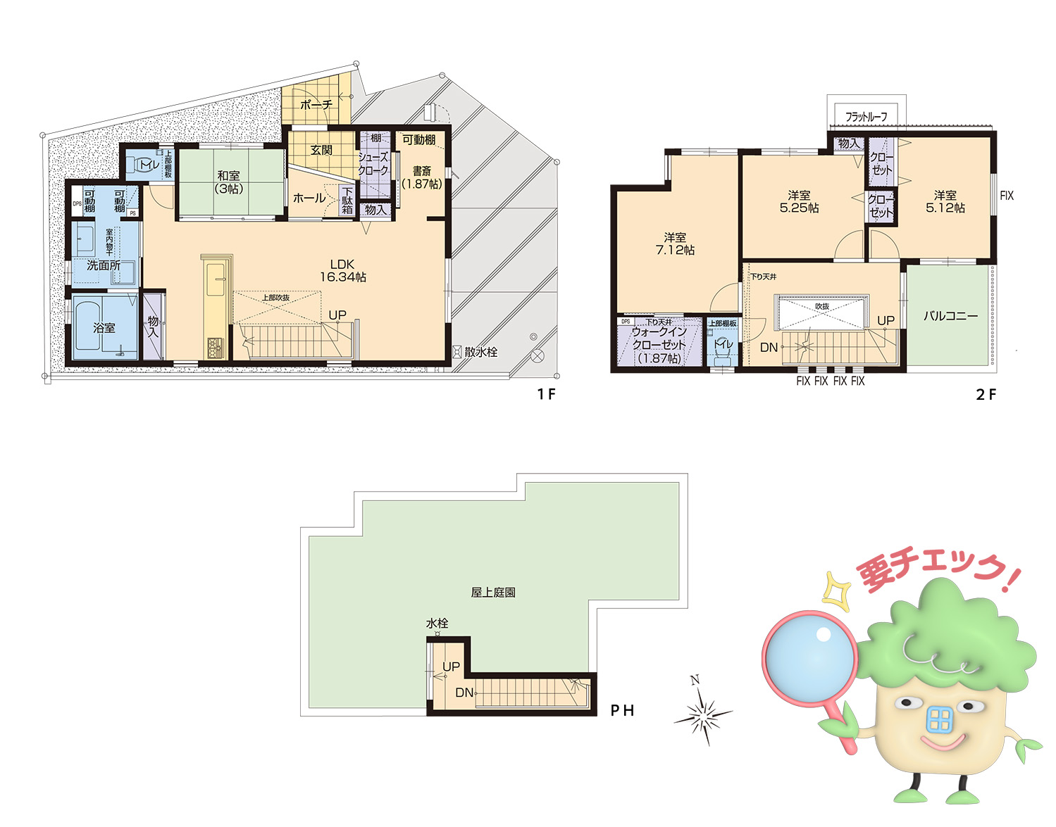 ※掲載の間取り図の外構・植栽はモデルハウス仕様で標準仕様とは異なります。
