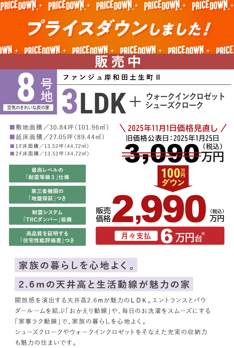 岸和田エリア新街区!新築一戸建てプライスダイン!