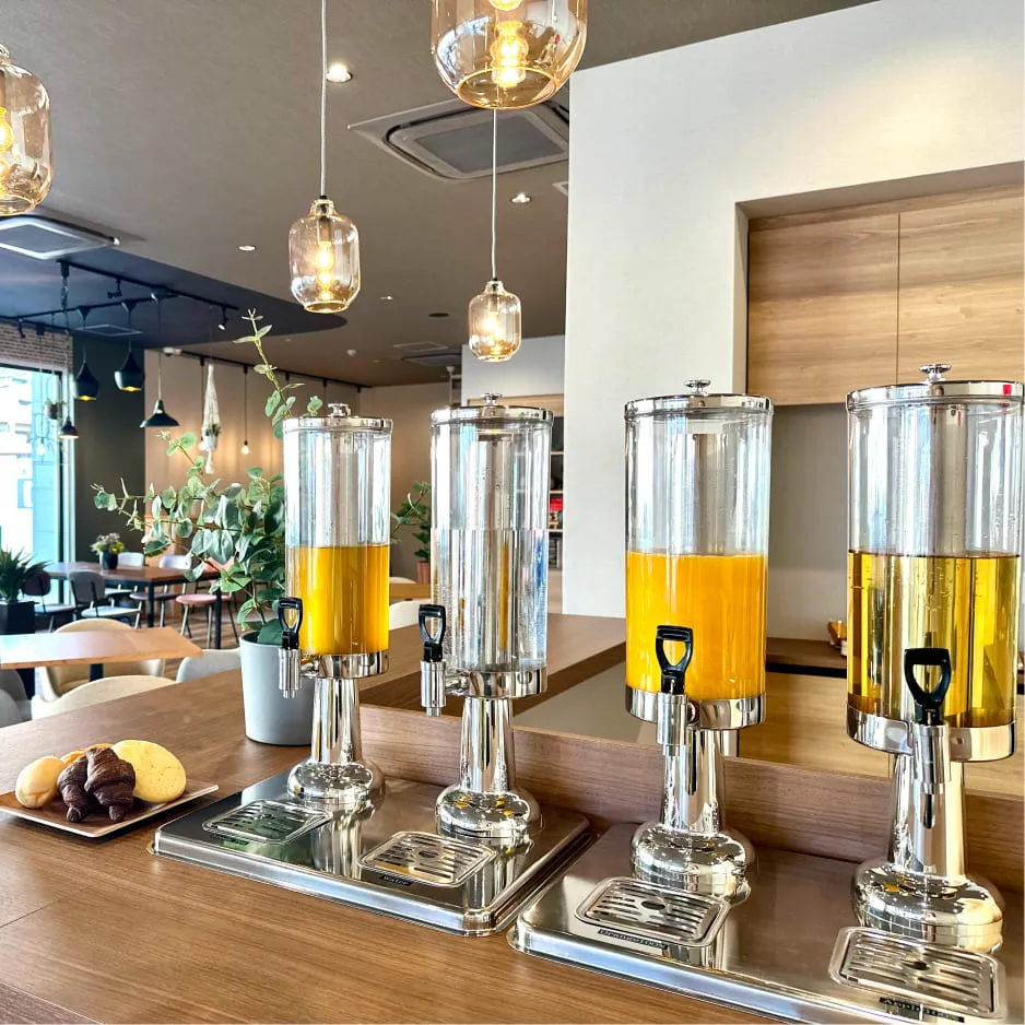 頭をすっきり、リフレッシュしたいときには、アールグレイ。さらに、お子さまに大人気のオレンジジュースも。