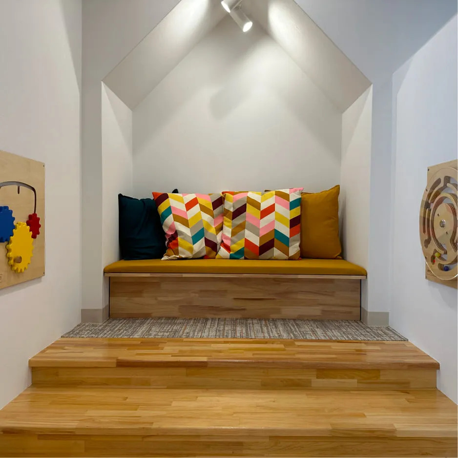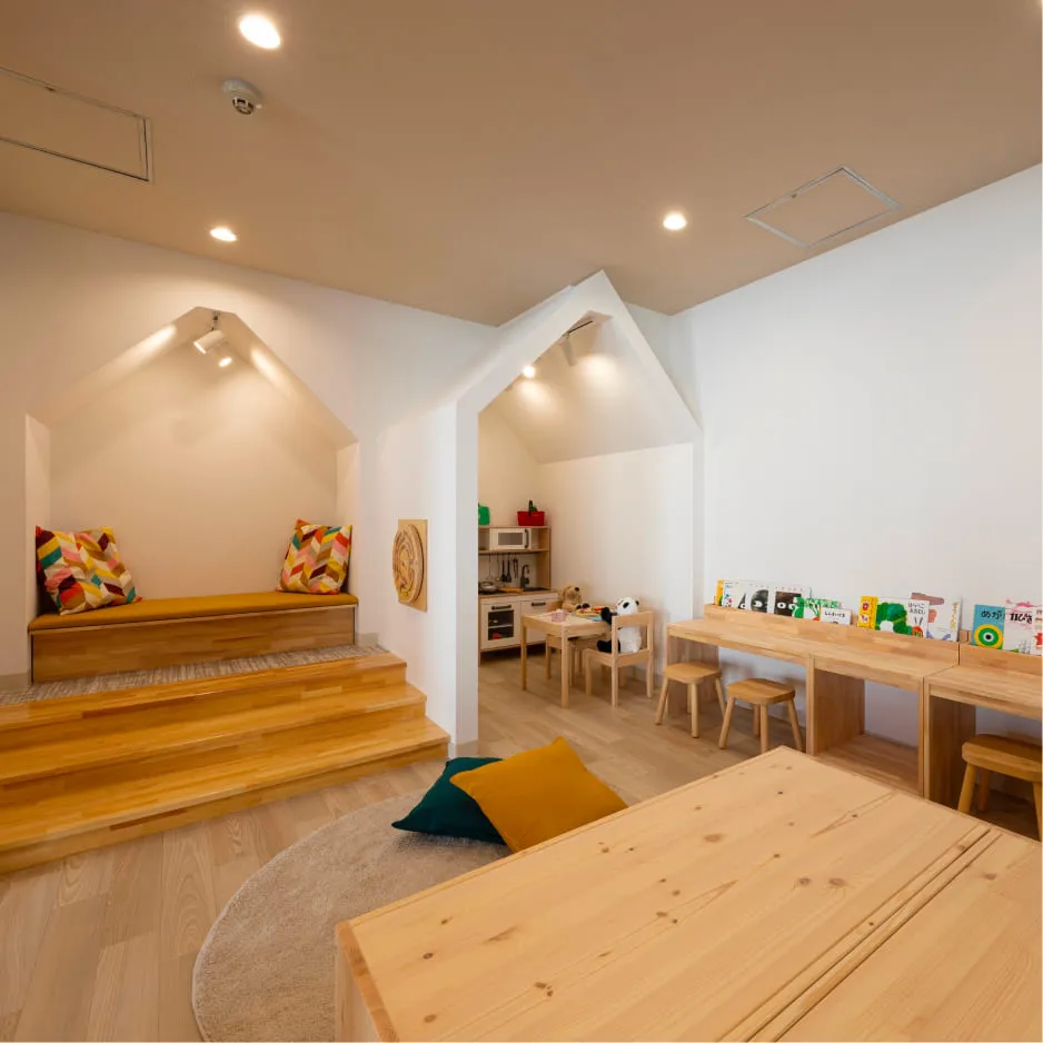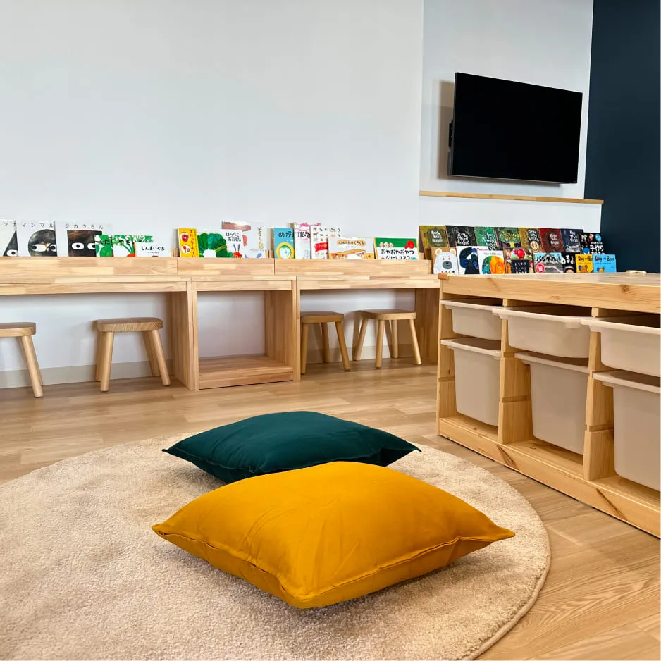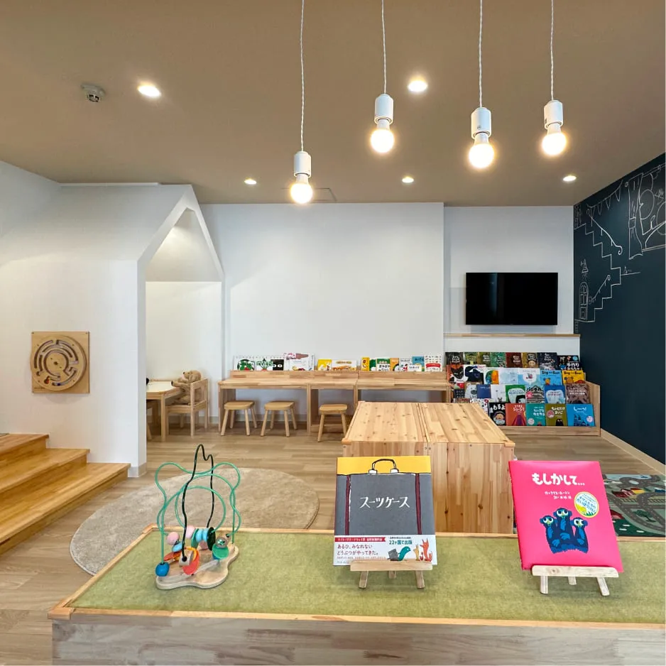 人気の絵本にお絵描きし放題のおおきな黒板。キッチンとおおままごとセットにブロックも。子どもが夢中になれる広々空間に、一日ずーっとパパ・ママ安心。