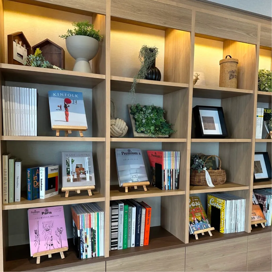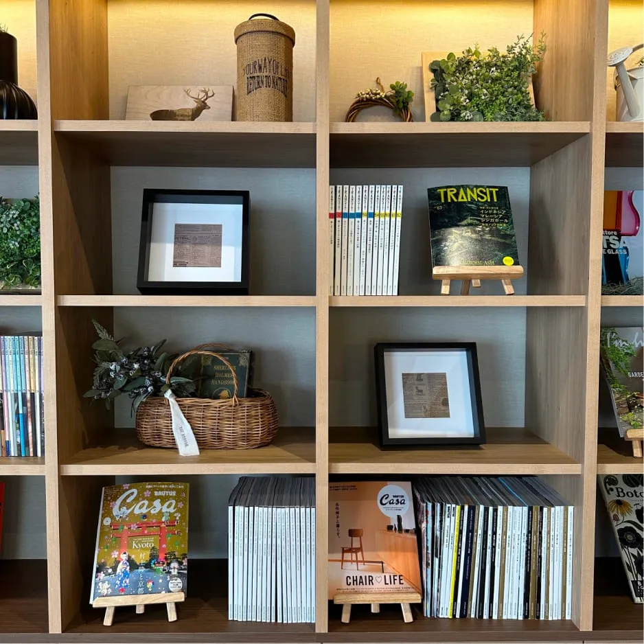 住宅、インテリア、暮らし、料理、旅行に関する雑誌や洋書、エッセイなど200冊以上を幅広くセレクト。おうち探しやよりよいライフスタイルのアイデア、理想の住まいづくりに役立つ情報が盛りだくさん。