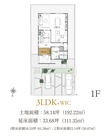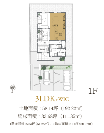 1階床面積:18.53坪(61.28m2)