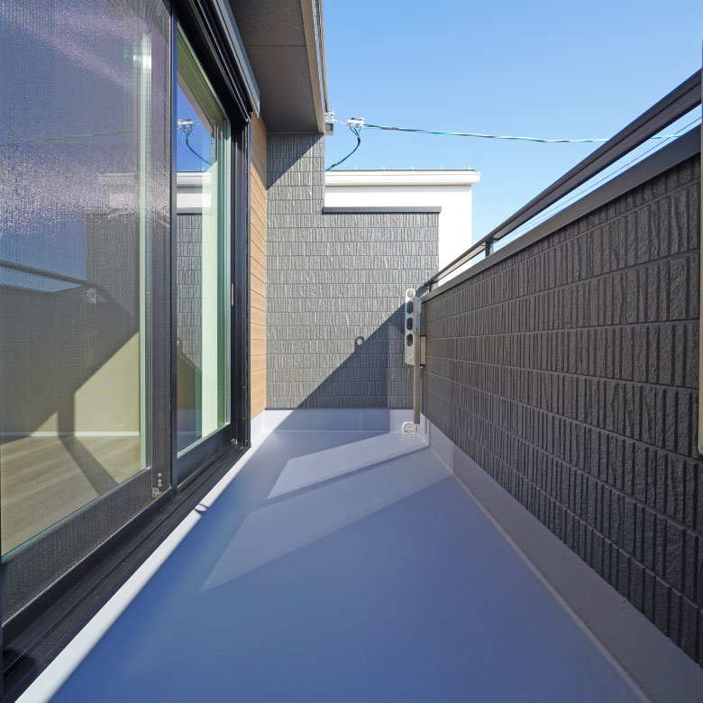 天候に左右されにくいベランダは、日当たりの良い南向き。2つの洋室から出入り可能な2Way仕様で、洗濯をスムーズにするだけでなく部屋の採光性も高めます。