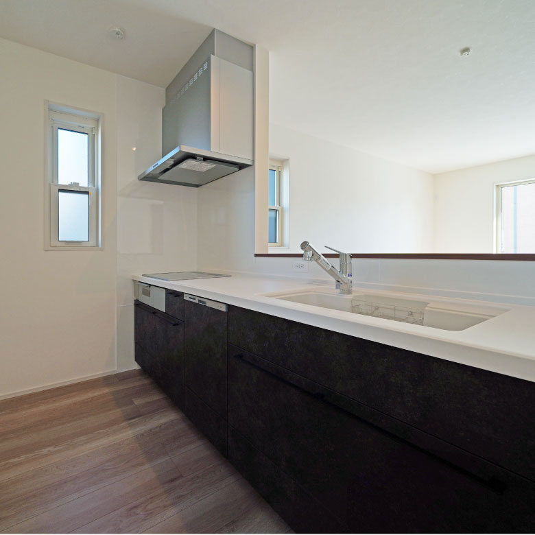 LDKに開放感を与える天井高2.6mと、視界が抜けるI字型のレイアウトが、空間の広がりを演出します。