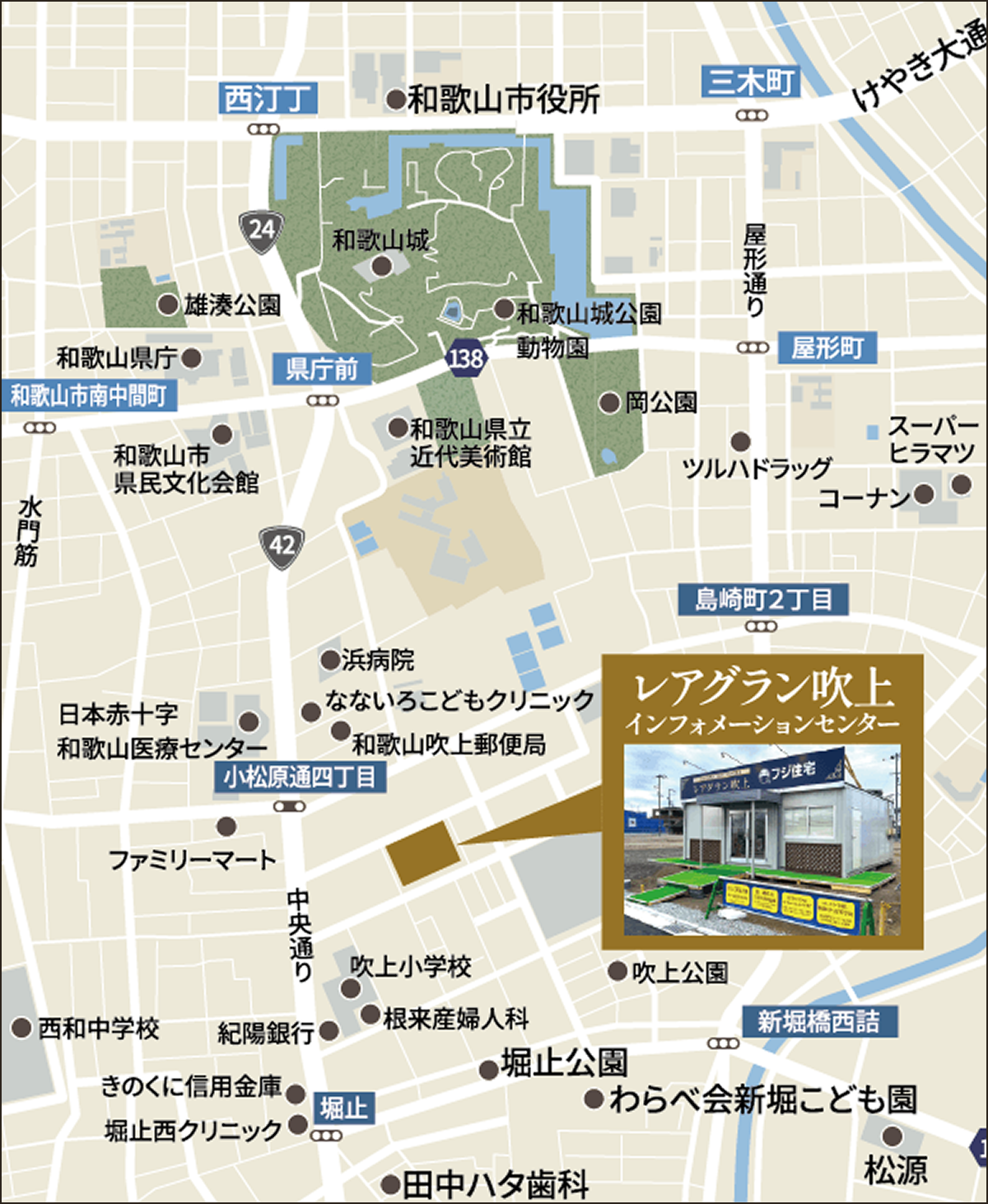 ※掲載の徒歩分数は80mを1分、自転車分数は300mを1分、自動車分数500mを1分として計算した概測分数です。※道路距離は現地からの地図上での概測です。信号待ち時間は含まれません。※周辺環境のデータは2024年5月現在のものです。※現地周辺の施設写真は、2024年6月に撮影したものです。