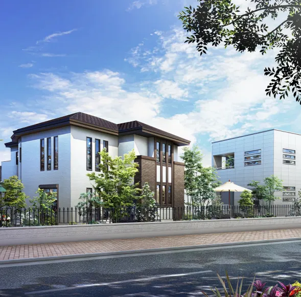 専用地域 - 建物の高さに制限が定められており、視界の抜ける開放感がうれしい低層住宅地。
