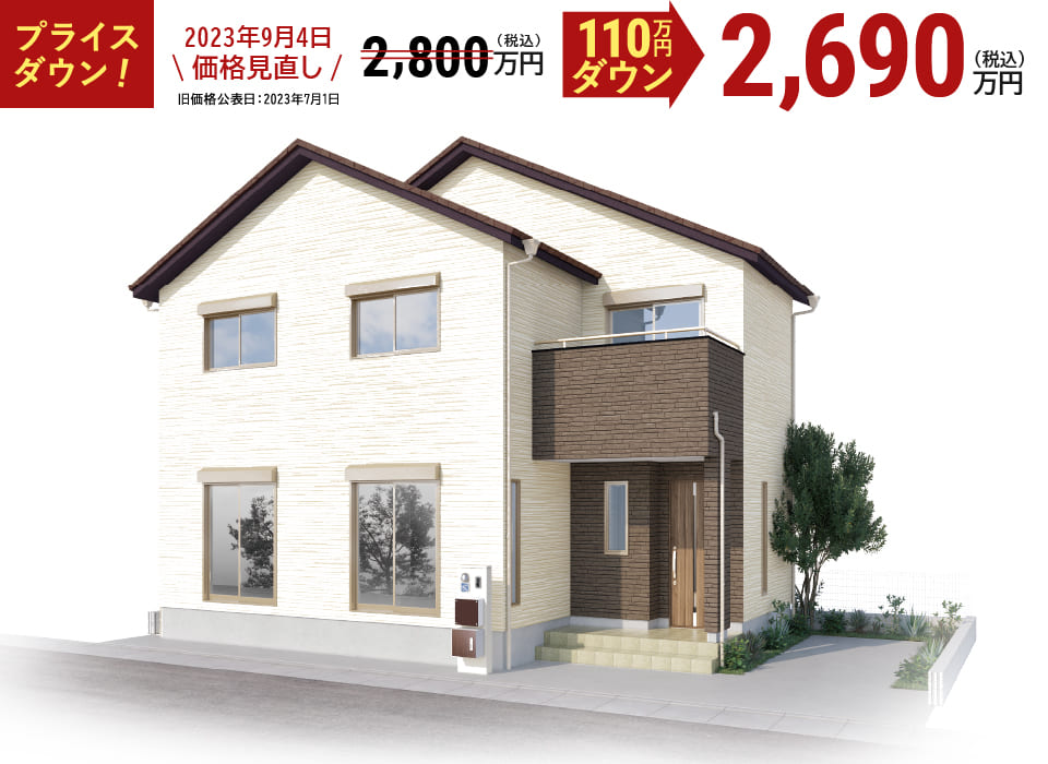 ※40年返済での計算です。※当社提携銀行ローン0.87%/3,480万円の物件を頭金0円で3,480万円借入れの場合※月々返済/69,339円※ボーナス返済(年2回)/約10.0万円(1回分)※当社提携銀行ローン 年0.87%(変動金利)元利均等払い・現行金利3.075%から-2.205%優遇金利を適用した場合の計算例です。※金利は変更される場合があります。※融資限度額/購入価格が融資限度額(100万円以上2億円以内・10万円単位)。※融資限度額の割合/物件価格の最高110%以内(各金融機関による)。※銀行融資手数料/お借入金額 ×~2.2%(各金融機関による)。※金融機関事務手数料/66,000円(各金融機関による)。※団体信用生命保険/加入要。※当社事務手数料/110,000円(税込)。上記金利は2025年10月1日時点のものです。上記金利は一定の条件を満たす方の例です。※販売価格には消費税(10%)相当額が含まれます。※販売価格には外構・付帯工事費が含まれます。※諸費用/自治会費、登記費用、並びに住宅ローンご利用の方は利用するローンの規定と利用形態に応じた保証料・事務手数料及び火災保険料等が必要になります。※間取図・外構等は図面を基に描いたイメージにつき、実際とは一部異なる場合があります。(2025年9月時点)※間取図の家具・車の表記はイメージ配置になり、実際には付かないものがございます。 ※モデルハウス販売は、現状有姿となります。現地にて、付帯設備・家具等を係員にお問い合わせ、お確かめ下さい。家電・家具等は商品購入時の保証となります。あらかじめご了承下さい。※掲載の外観、内観写真は2024年7月に撮影したものです。※WIC=ウォークインクロゼット、SC=シューズクローク。。