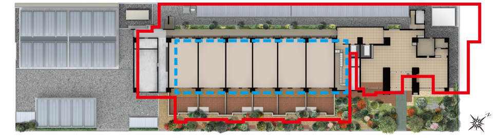 この杭26本(本体24本、階段2本)を打込み、万一の地震の時も暮らしの安心を支えます。(住棟部分のみ)