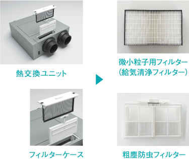 「ファンによる強制給気+強制排気」で行うため、室内の圧力がほぼ正圧に保たれるため、ホコリなどが侵入しにくく新鮮な空気を確実に供給できるメリットがあります。