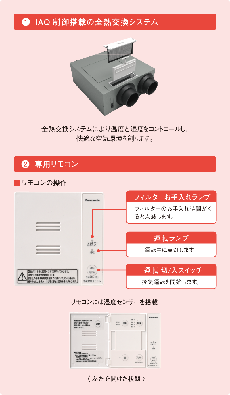 そんな、空気環境づくりをサポートするIAQ制御搭載の全熱交換システムを採用しています。